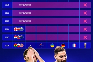 体育资讯4月2日讯 世预赛附加赛决赛,意大利点球大战不敌波黑,连续三届无缘世界杯。德国转会市场盘点了2006年以来意大利的世界杯成绩。